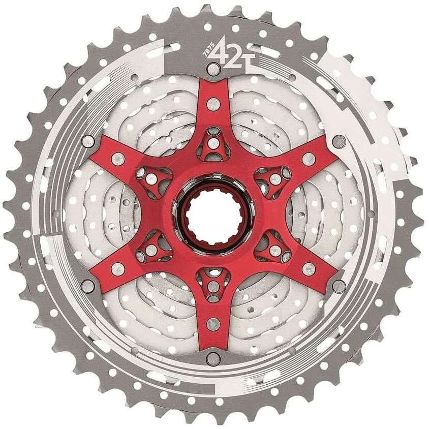 Posiblemente el MEJOR PRECIO DEL MERCADO. el Cassette 11V SUN RACE 11-42 Plata esta fabricado en Aluminio 7075 para bujes con núcleo standard.